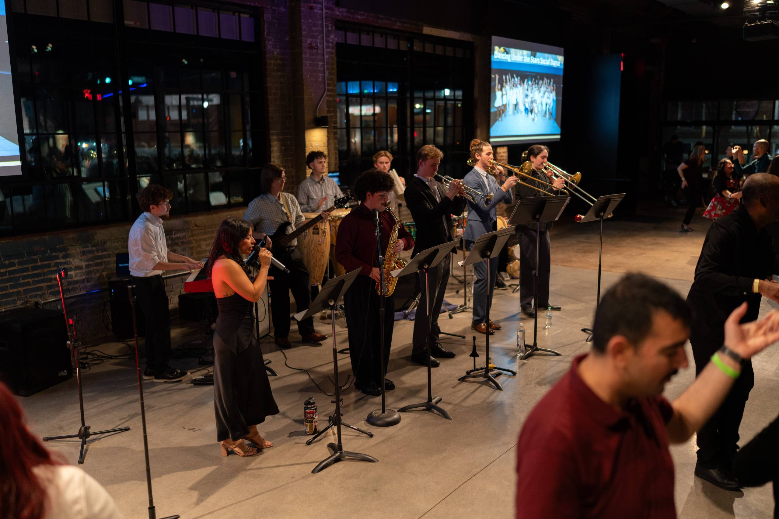 Orquesta Afinke (Ohr-KESS-tah Ah-FEEN-keh) is a 10-piece Latin band based in Northwest Arkansas performing live salsa, merengue, cumbia, and bachata classics. They’re re-energizing the Latin songs we know and love as a new generation of musicians. Orquesta Afinke was born out of the music buildings at the University of Arkansas, bringing together a group of college musicians ready to take on these beloved genres during an exciting time for Latin music in today’s music industry. Hoping to inspire you to get on the dance floor and connect with the music and the people around you, Orquesta Afinke plays hits from artists like Frankie Ruiz, Bad Bunny, Willie Colón, Grupo Niche, Karol G, Romeo Santos, and so many more.